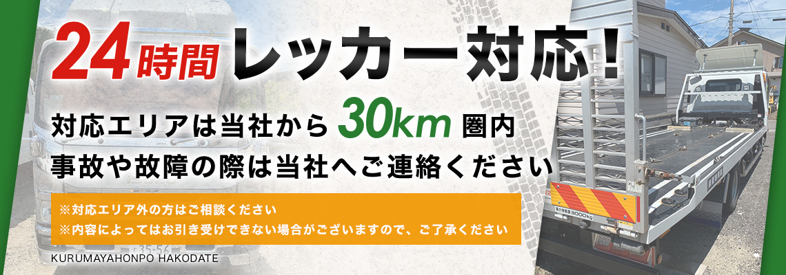 事故や突然の故障でも、24時間レッカー対応いたします!